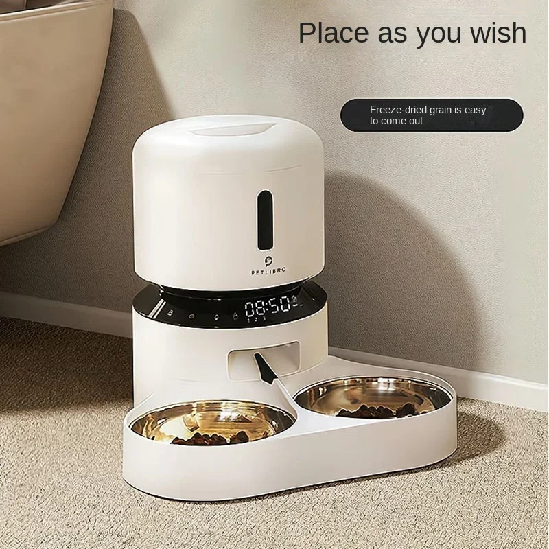 Petlibro Automatic Pet Feeder stands out with its wireless app set, enabling pet owners to remotely schedule feeding times or adjust portion sizes according to their pet’s dietary needs. This hands-free approach to feeding ensures that pets receive timely meals even when their owners are away.